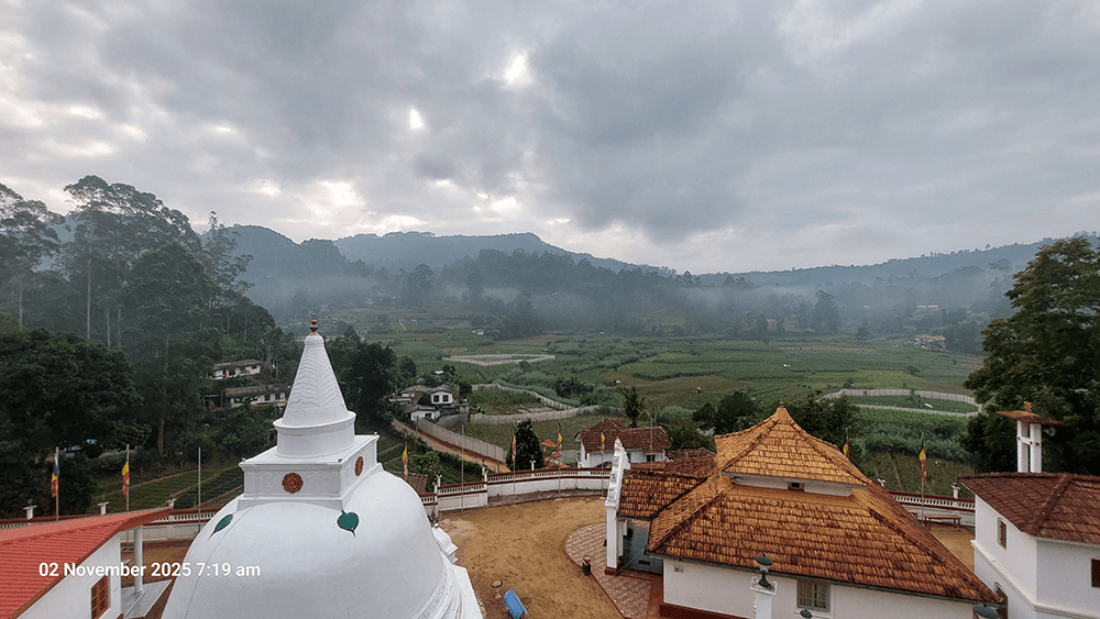 A peaceful Buddhist temple surrounded by tea estates, offering spiritual calm and scenic surroundings.
